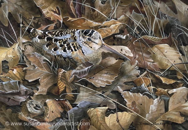 The colors and patterns on a woodcock's feathers, make them a master in the art of camouflage.
